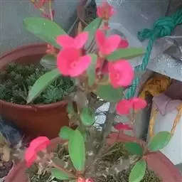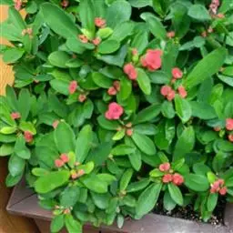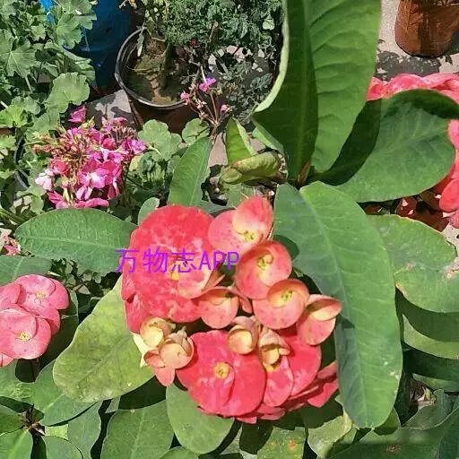 虎刺梅:别称铁海棠,是蔓生灌木植物。茎多分枝,长60-100厘米,直径5-10毫米,具纵棱,密生硬…