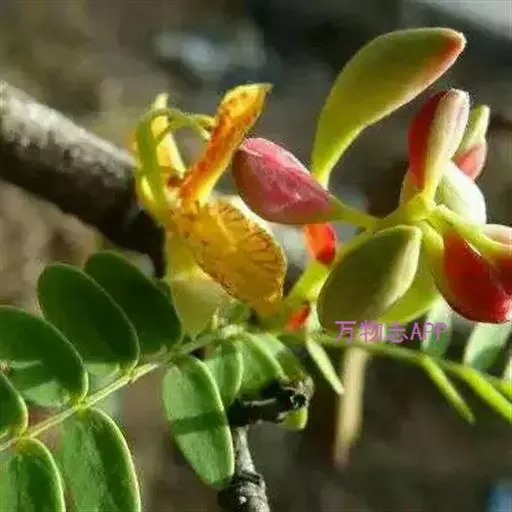 酸豆(学名:Tamarindus indica Linn.),乔木,高10-15(-25)米,胸径30-50(-90)厘米;树皮暗灰色,不规则纵裂。小叶小,长圆形,先端圆钝或微凹,基部圆而偏斜,无毛。花黄色或杂以紫红色条纹,少数;总花梗和花梗被黄绿色短柔毛;小苞片2枚,开花前紧包着花蕾;萼管长约7毫米,檐部裂片披针状长圆形,花后反折;花瓣倒卵形,与萼裂片近等长,边缘波状,皱折;雄蕊长1.2-1.5厘米,近基部被柔毛,花丝分离部分长约7毫米,花药椭圆形;子房圆柱形,微弯,被毛。荚果圆柱状长圆形,肿胀,棕褐色,直或弯拱,常不规则地缢缩;种子3-14颗,褐色,有光泽。花期5-8月;果期12-翌年5月。