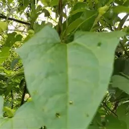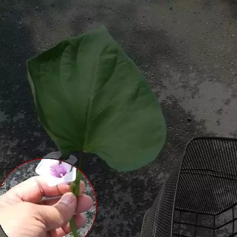 叶圆心形或宽卵状心形,长4-18厘米,宽3.5-16.5厘米,基部圆,心形,顶端锐尖、骤尖或渐尖,通常全缘,偶有3裂,两面疏或密被刚伏毛;叶柄长2-12厘米,毛被与茎同。