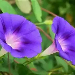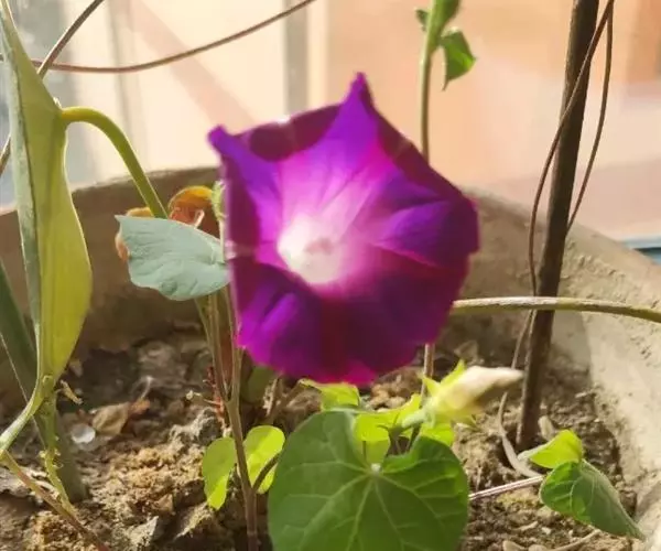 圆叶牵牛花也可盆栽,盆土应选取含有丰富的有机质及排水良好的土壤,掺入适量的腐熟饼肥,并于生长期间每周追施稀薄液肥一次,欲使花朵大,应限制蕾数,可参照上述行两次摘心后,再生出的蔓保留一片叶再行摘心一次。这样把花蕾限定至多为9个,使养分集中,花径可达20厘米。种子成熟时开裂散落,采种应提前在蒴果变黄时采摘。