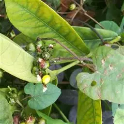 蒴果近球形,直径9-10毫米,3瓣裂。种子卵状三棱形,长约5毫米,黑褐色或米黄色,被极短的糠粃状毛。