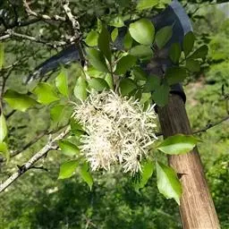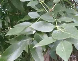 支撑:新栽种的湖北梣,在栽植后设立三角形支撑架固定,支撑点要选在大于树木总高度的1/3处,支撑杆与地面夹角尽量接近45°,不可大于60°,支撑点用无纺布等软材料保护,以防伤皮,以起到稳定树干,抗风摇动,促进移栽湖北梣尽快形成根系,保成活,迅速恢复树势。