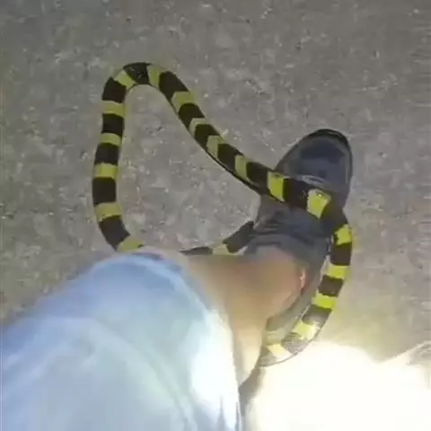 怕见光线,白天 金环蛇 往往盘着身体不动,把头藏于腹下,但是到晚上十分活跃,捕食蜥蜴,鱼类,蛙类,鼠类等,并能吞食其它蛇类及蛇蛋。金环蛇性温顺,行动迟缓, 其毒性十分剧烈,但是不主动咬人。金环蛇夜晚活动。