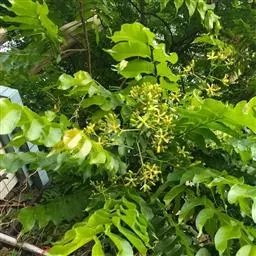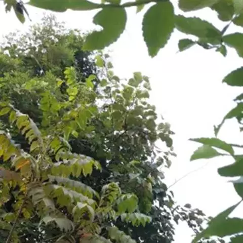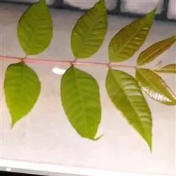 叶为2-3回奇数羽状复叶,长20-40厘米;小叶对生,卵形、椭圆形至披针形,顶生一片通常略大,长3-7厘米,宽2-3厘米,先端短渐尖,基部楔形或宽楔形,多少偏斜,边缘有钝锯齿,幼时被星状毛,后两面均无毛,侧脉每边12-16条,广展,向上斜举。