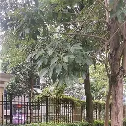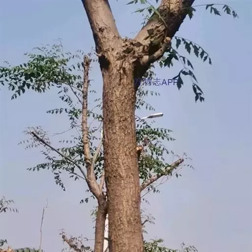 落叶乔木,高达10余米;树皮灰褐色,纵裂。分枝广展,小枝有叶痕。