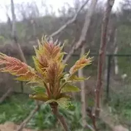 2月下旬或3月上旬选取直径为0.5厘米的苗根或枝条,剪成长15厘米的插条后再进行扦插。插条上口平截,下口斜截。扦插株距为15-20厘米、行距为30-40厘米,深度为长度的1/3,扦插后将周围土壤按实。4月上旬,插穗上的不定芽相继萌发出土。当苗长到5-8厘米时,只保留1个萌蘖,培养成苗干,其余的萌蘖抹去。