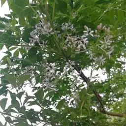 楝(学名:Melia azedarach L. )是楝科,楝属落叶乔木,高可达10米;树皮灰褐色,分枝广展,叶为2-3回奇数羽状复叶,小叶对生,叶片卵形、椭圆形至披针形,顶生略大。圆锥花序约与叶等长,花芳香;裂片卵形或长圆状卵形,先端急尖,花瓣淡紫色,倒卵状匙形,两面均被微柔毛,花药着生于裂片内侧,且互生,子房近球形,无毛,每室有胚珠,花柱细长,柱头头状,核果球形至椭圆形,内果皮木质,种子椭圆形。4-5月开花,10-12月结果。