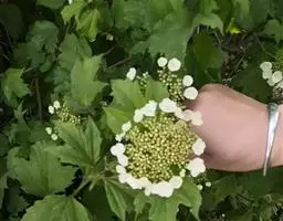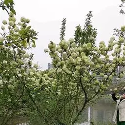 绣球荚蒾,五福花科荚蒾属落叶灌木,高可达3米,树冠球形;幼枝有垢屑状星状毛,老枝粗壮,具皮孔,…