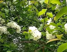 圆锥花序通常生于具两对叶的幼技顶,长9-15厘米,直径8-13厘米;花冠筒长3.5-4毫米,裂片长2-3毫米;花柱较细,长约1毫米,柱头常高出萼齿。果核通常倒卵圆形至倒卵状椭圆形,长6-7毫米。其它性状同珊瑚树。花期5-6月,果熟期9-10月。
