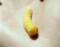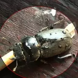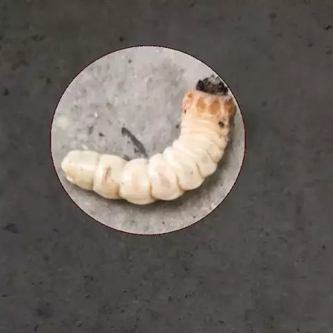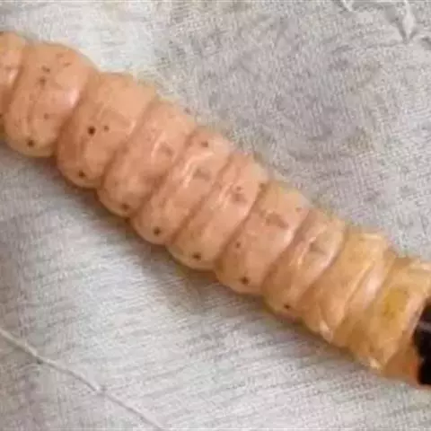 斗米虫为锈色粒肩天牛的幼虫,锈色粒肩天牛主要危害槐树Sophora japonica,…