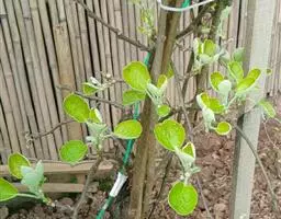一年四季均可扦插,扦插宜在早晚或阴天进行,随采随插。选择新梢多且生长量大的健壮植株,采集无病虫害半木质化新梢。将新梢剪成长10~15cm,留有3片叶的扦插条,另外为了节省材料也可以剪成短插条,效果也很好。扦插前将插条基部3cm在生根剂里浸泡2秒,晾1~5分钟后扦插。插前必须在基质上用比扦插条略粗的竹棍打孔,深3~4cm,把插条插上,插后将孔口缝隙捏实,每个育苗钵扦插1支插条,使叶片尽可能舒展见光。扦插后立即再喷淋透水,然后洒上2000倍液适量多菌灵药液,消毒,扣好塑料小拱棚薄膜。
