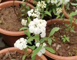 珍珠绣线菊的病害主要以白粉病为主,白粉病主要发生在嫩叶片、嫩茎、花瓣等部位,染病初期为黄绿色不规则小斑点,边缘不明显。随后病斑逐渐扩大,染病部位表面生出白粉斑。变成灰色,连片覆盖其表面,边缘不清晰,呈淡灰白色。受害叶片皱缩变小,嫩梢扭曲变形。白粉病病菌在病株残体上越冬,第二年春季气温回升时,病菌借气流传播。当气温在20℃-25℃,湿度较大时,侵入寄主体内,导致发病。因此,通风透光不良,易导致病害传播。