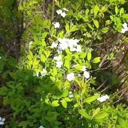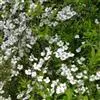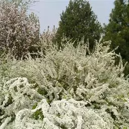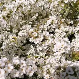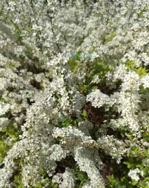珍珠绣线菊(学名:Spiraea thunbergii Bl.):蔷薇科、绣线菊属灌木,高可达1.5米;枝条呈弧形弯曲细长开张,小枝有稜角,无毛;叶片线状披针形,基部狭楔形,叶柄极短或近无柄,伞形花序无总梗,花3-7朵,基部簇生数枚小形叶片;萼筒钟状,萼片三角形或卵状三角形,花瓣倒卵形或近圆形,白色;花盘圆环形,子房无毛或微被短柔毛,蓇葖果开张,4-5月开花,7月结果。