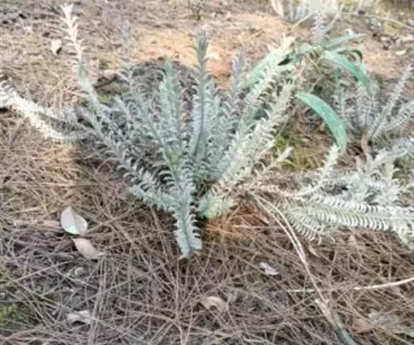 多年生草本,高15-23厘米,常有残留的隔年枯茎,全体因密被棉毛而呈灰白色,上部近花处除被棉毛外,还具腺毛。主根粗短,下部发出之许弯曲支根,成密丛。茎多数,丛生,基部多倾卧或弯曲,老时木质化,通常不分枝。叶交互对生,下部者间距极短,仅4毫米,密集,向上逐渐疏离,相隔可达10毫米,至花序附近间距最大,可达16毫米,叶片大小,亦作相同的变异,下方者最小,鳞片状,向上则逐渐增大,成长圆状披针形至线状披针形,通常长12-20毫米,宽2-3毫米,最长可达25毫米,先端锐尖,或锐头而有小凸尖,基部渐狭,多少下延于茎成狭稜,中脉面凹背凸,两面均密被灰白色锦毛,老时上面的毛多少脱落。总状花序顶生;花少数,单生于叶腋,具长2-7毫米之短梗;叶状小苞片二枚,长9-15毫米,宽1-2毫米,生于萼管基部;萼筒状,膜质,被绵毛,或绵毛与腺毛相杂。管长5-7毫米。上有9条凸起的粗肋,其中4条分别通入萼齿;萼齿4枚,草质,线形或线状披针形而先端渐尖,与萼管等长或稍长,长5-6毫米,宽1-2毫米,有时长达10毫米,宽3毫米;花冠谈紫色或几白色,长约为萼的两倍,长15-18毫米,被少量柔毛,花管细长,近喉处扩大,瓣片二唇形,上唇略作盔状,2裂,下唇3裂,中裂稍大,均为倒卵形,端圆钝,多少开展;雄蕊4枚,二强,着生于花管上,前方一对较长,达7毫米左右,后方一对长约6毫米,花药背着,微露于花冠喉部,药2室,并行,相等,长2.5-2.8毫米,宽0.6-0.8毫米,彼此分离,长卵形,下部渐细,有一小凸尖,纵裂;子房长卵形,花柱细长,先端弯向前方,柱头长圆形。蒴果长圆形,长约9毫米,宽3毫米,厚2毫米,先端渐细而成一稍弯的尖嘴。花期3-4月。