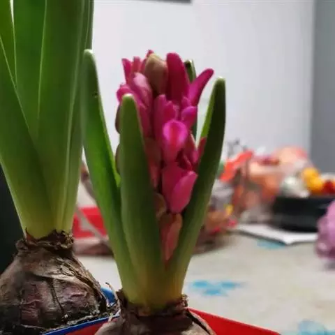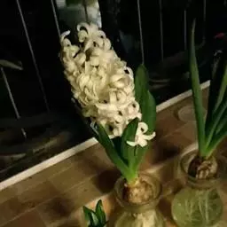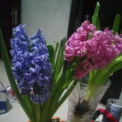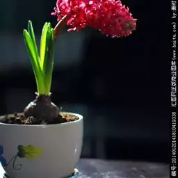 风信子水养要求水位离球茎的底盘要有1-2cm的空间,让根系可以透气呼吸,严禁将水加满没过球茎底部。可在12月份将种球放在阔口有格的玻璃瓶内,加入少许木炭帮助防腐和消毒。其种球仅浸至球底即可,然即放置在阴暗的地方,并用黑布遮住瓶子,这样约经过20多天的全黑环境萌发后,再放到室外让它接受阳光的照射,初期每天照1-2小时,后逐步增至7-8小时,大多数在天气好的情况下,到春节便能开花。