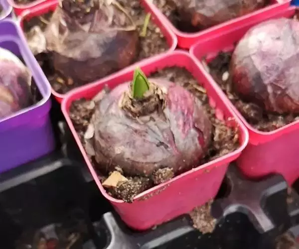 风信子开花所需养分,主要靠鳞茎叶中储存的养分供给,只要选择表皮无损伤、肉质鳞片不过分皱缩、较坚硬而沉重、饱满的种球,就能开出丰硕美丽的花。在选购种头时,要注意挑选皮色鲜明、质地结实,没有病斑和虫口的为好,通常从种皮的颜色可以基本判断它所开的是什么颜色的花。比如外皮为紫红色的它就会开紫红色的花,若是白色的将会开白色的花,但有些经过杂交育成的品种其颜色较为复杂,有时会分辨不清,需要向经营者询问清楚才好购买。当种头购回后,用多菌灵泡好,晾干。为了使它打破休眠期,要先放进冰箱的最下格冷藏一个月左右,以便于日后顺利开花。但从冰箱取出时,最好移放在阴凉的地方七八天才可播种。
