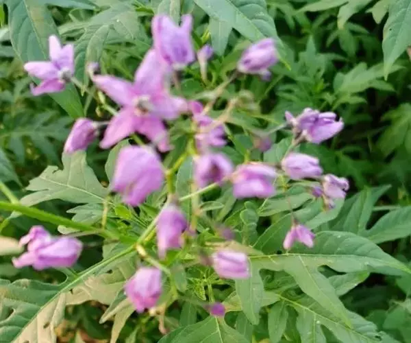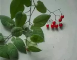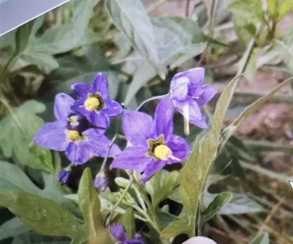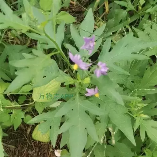 青杞 直立草本或灌木状,茎具棱角,被白色具节弯卷的短柔毛至近于无毛。叶互生,卵形,长3-7厘米,宽2-5厘米,先端钝,基部楔形,通常7裂,有时5-6裂或上部的近全缘,裂片卵状长圆形至披针形,全缘或具尖齿,两面均疏被短柔毛,在中脉,侧脉及边缘上较密;叶柄长约1-2厘米,被有与茎相似的毛被。
