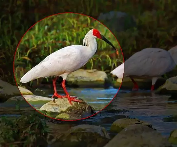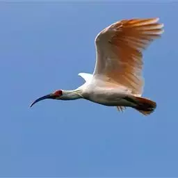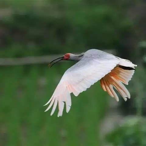 朱鹮(学名:Nipponia nippon):古称朱鹭、红朱鹭,朱鹮系东亚特有种。中等体型,体羽白色,后枕部有长的柳叶形羽冠,额至面颊部皮肤裸露,呈鲜红色;繁殖期时用喙不断啄取从颈部肌肉中分泌的灰色素,涂抹到头部、颈部、上背和两翅羽毛上,使其变成灰黑色。