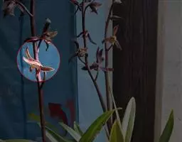 金银花,三月开花,五出,微香,蒂带红色,花初开则色白,经一、二日则色黄,故名金银花。又因为一蒂二花,两条花蕊探在外,成双成对,形影不离,状如雄雌相伴,又似鸳鸯对舞,故有鸳鸯藤之称。
