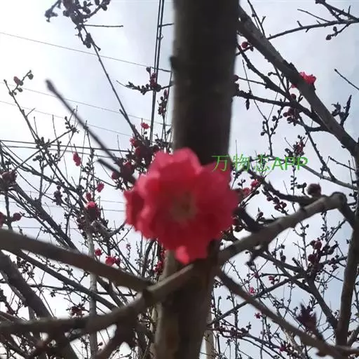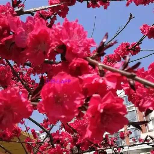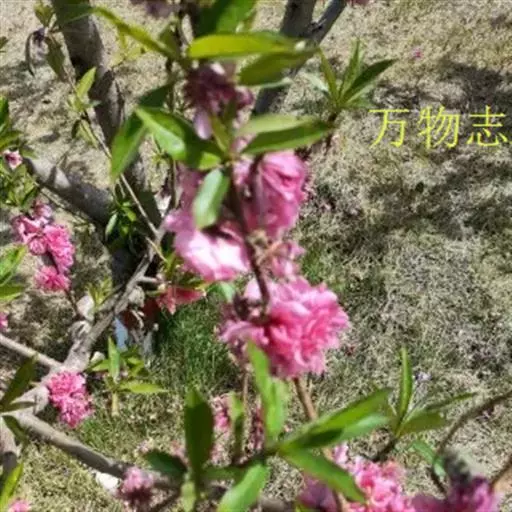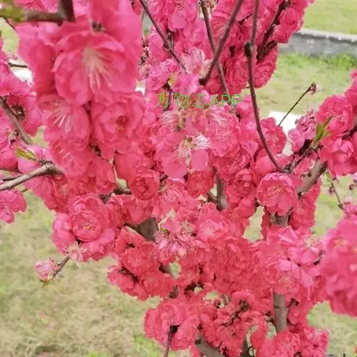 是一种蔷薇科、李属植物,花为牡丹形,呈现亮红色,多年生长,5-20年间都可绽放繁盛的花,可在8月上中旬进行采种。花大红色,半重瓣。花萼2轮,萼筒半球形,绿色。