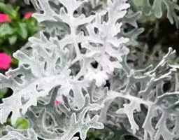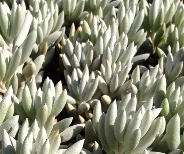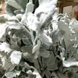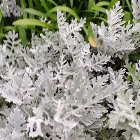 银月叶片特写 多年生植物,叶互生,肉质,呈纺锤状,叶片灰绿色,表面覆蚕丝状白毛。可长成矮灌木状。头状花序,花黄色。