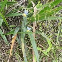 植株长50~80厘米。叶在最下面的对生或散生,向上常兼有散生、对生和轮生的,近条形至披针形,长7~11厘米,宽1~2.5厘米,先端不卷曲或稍弯曲。花1~6朵,淡黄色,有时稍带淡紫色,顶端的花具3~4枚叶状苞片,其余的具2枚苞片;苞片先端卷曲;花被片长2.5~3.5厘米,宽约1厘米,内外轮的相似;雄蕊长约为花被片的2/5;花药近基着,花丝无小乳突;柱头裂片长1.5~2毫米。蒴果长2~2.2厘米,宽约2.5厘米,棱上有宽约6~8毫米的翅。花期3~4月,果期5月。