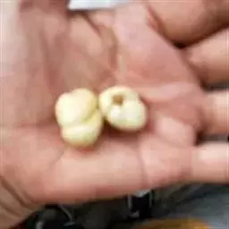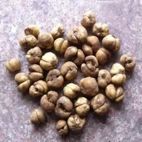 2、珠贝:为完整的鳞茎,呈扁圆形,高1~1.5cm,直径1~2.5cm。表面类白色,外层鳞叶2瓣,肥厚,略似肾形,互相抱合,内有小鳞叶2~3枚和干缩的残茎。