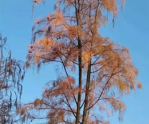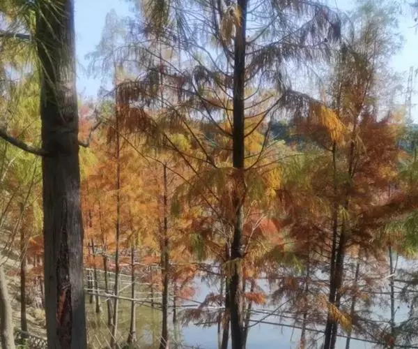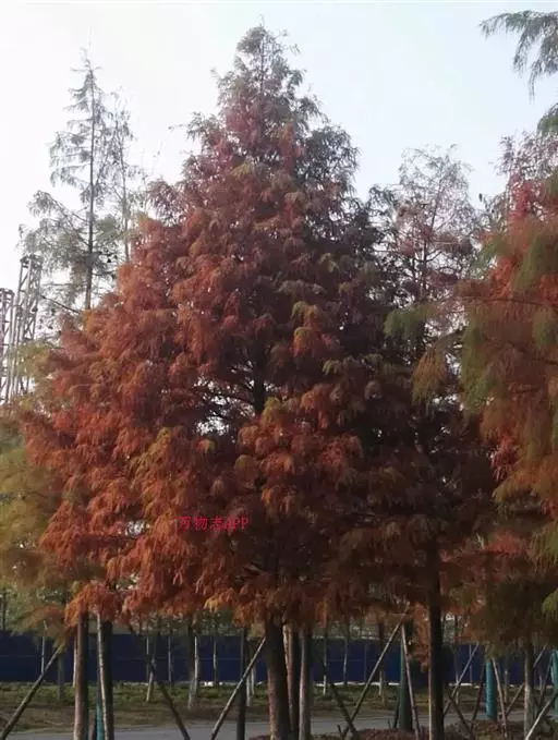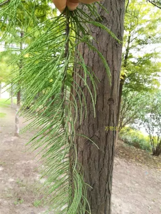 落羽杉 Rich.),杉科落羽杉属木本植物。树干尖削度大,基部通常膨大,具膝状呼吸根,树皮棕色,…