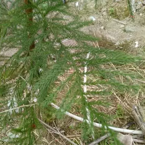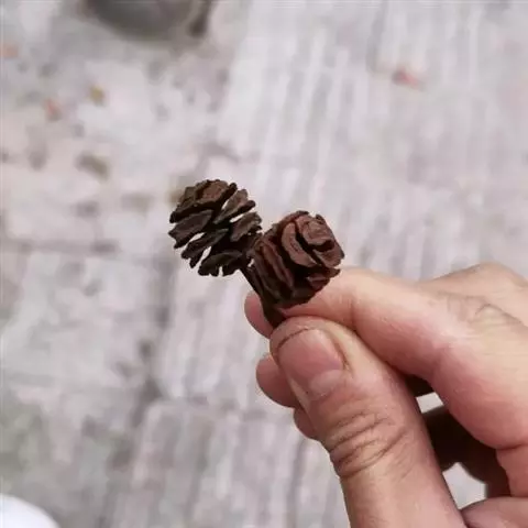 叶钻形,微内曲,在枝上螺旋状伸展,上部微向外伸展或近直展,下部通常贴近小枝,基部下延,长4-10毫米,基部宽约1毫米,向上渐窄,先端有渐尖的锐尖头,下面有棱脊,上面中脉微隆起,每边有2-4条气孔线. 球果圆球形或矩圆状球形,有短梗,向下斜垂,熟时褐黄色,长2-4厘米,径1.8-3厘米;种鳞木质,盾形,中部种鳞高1.5-2厘米;种子不规则三角形,微扁,红褐色,长1.3-1.8厘米,宽0.5-1.1厘米,边缘有锐脊。花期3-4月,球果10月成熟。