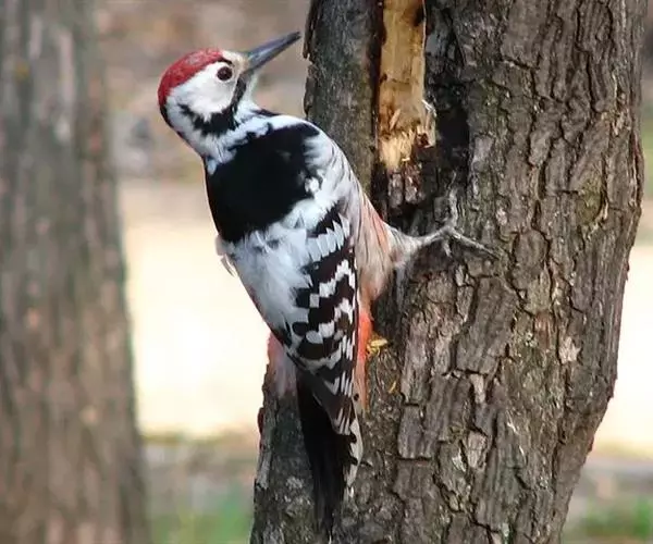 白背啄木鸟(学名:Dendrocopos leucotos)共有10个亚种。中等体型,体长25厘米。特征为下背白色,无论雌雄均臀部红色。脚强健,有趾4个,其中2个向前,2个向后,各趾的趾端均具有锐利的爪,巧于攀登树木。尾羽的羽干刚硬如棘,能以其尖端撑在树干上,助脚支持体重并攀木。嘴强直如凿。舌细长,能伸缩自如,先端并列生短钩。攀木觅食时以嘴叩树,头骨十分坚固,大脑周围有一层绵状骨骼,内含液体,对外力能起缓冲和消震作用;头骨周围还具有起减震作用的肌肉,能把喙尖和头部始终保持在一条直线上。喜栖于老朽树木,每年錾树洞营巢,不怯生。以昆虫为主食,亦吃浆果。为常见的留鸟。主要分布于欧洲北部、小亚细亚、西伯利亚南部、远东、中国、朝鲜和日本。