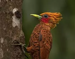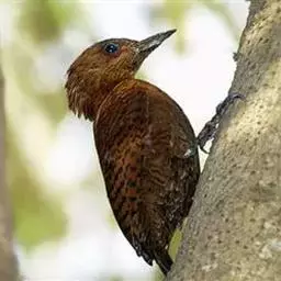 栗啄木鸟:是一种红褐色啄木鸟,体长21厘米。雄性成鸟整个头棕色,…