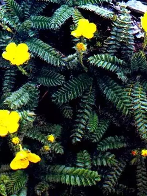 银露梅 Soják)是蔷薇科,金露梅属灌木,高可达2米,树皮纵向剥落。小枝红褐色,羽状复叶,…