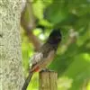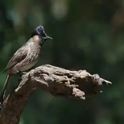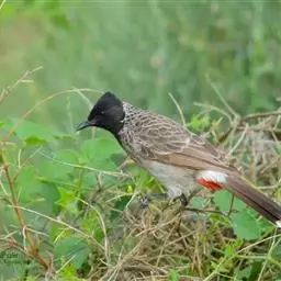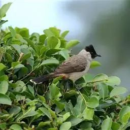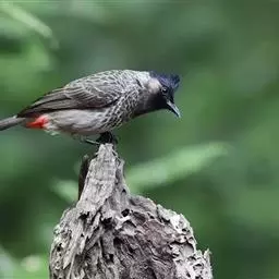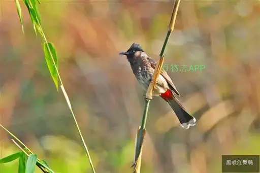 黑喉红臀鹎(学名:Pycnonotus cafer):体长19-23厘米,是一种中等体型的偏褐色鹎。额至头顶、眼先、眼周、嘴基和颏、喉全为黑色,具羽冠,耳羽红褐色。背暗褐到黑褐色。尾下覆羽绯红,尾上覆羽近白,虹膜深褐色;嘴黑色;脚暗角质色至黑色。