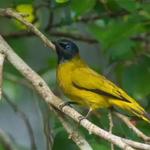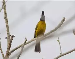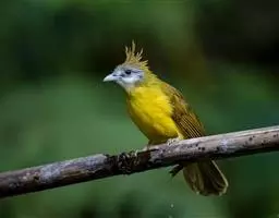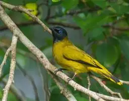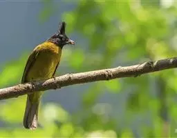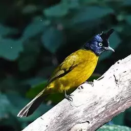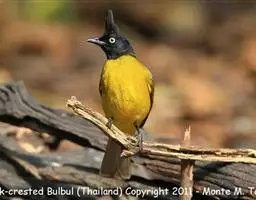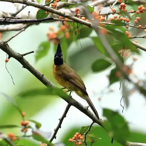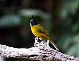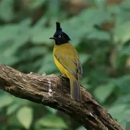 黑冠黄鹎:体长18-21厘米,是一种中等体型偏黄色鹎。整个头、颈、颏、喉黑色,头顶有显著直立的羽冠,…