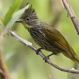 纹喉鹎:体长19厘米,是一种中等体型的偏绿色鹎。特征为头顶、脸颊、颏及喉均具黄色条纹。上体橄榄绿色。…