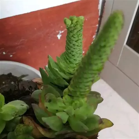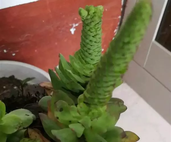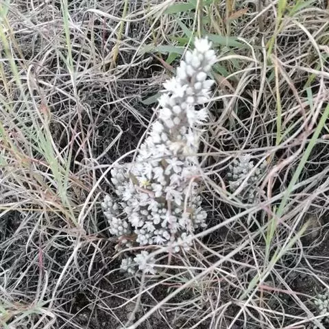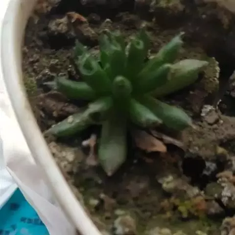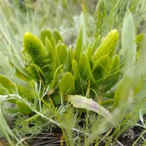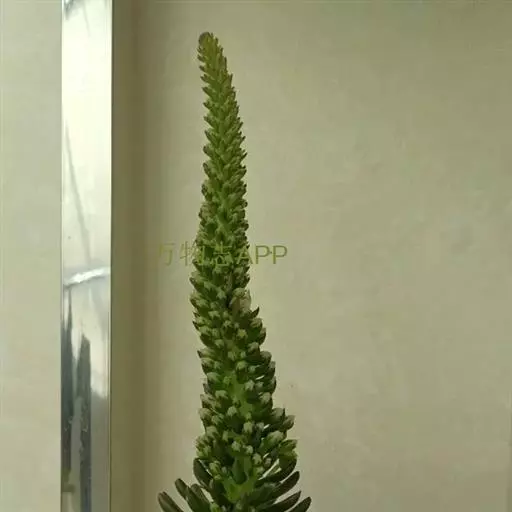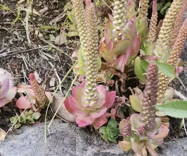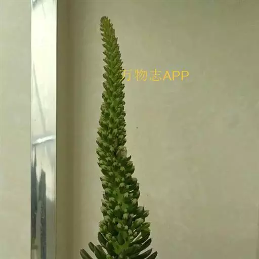 钝叶瓦松〔学名:Orostachys malacophylla (Pall.) Fisch.〕是景天科,瓦松属二年生肉质草本植物。钝叶瓦松属于轴根型植物,茎生叶互生,花序紧密,苞片匙状卵形,花常无梗;萼片长圆形,花瓣白色或带绿色,长圆形至卵状长圆形,雄蕊较花瓣长,花药黄色;种子卵状长圆形。7月开花,8-9月结果。