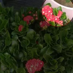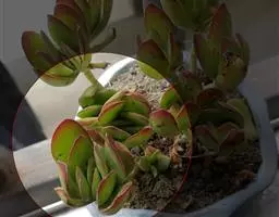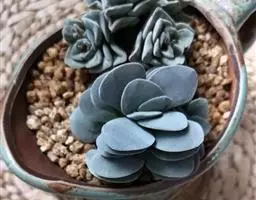 叶子表面宽厚,富肉质感且带有磨纱质感,看像石头质地;开红色小花,生于植株顶部,倒伞形密生,形状像花…