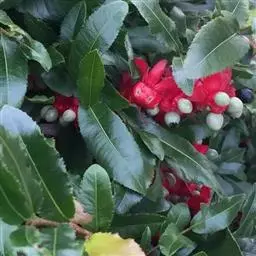 桂叶黄梅 桂叶黄梅有鲜艳的果实,挂果期长、经久不落,花朵素雅,萼片和雄蕊表现出少有的特性,常用作观赏植物,应用形式为地栽和大型盆栽。适合于庭院、公园种植欣赏。它的耐阴性,是建筑物阴面植物配置的良好树种。