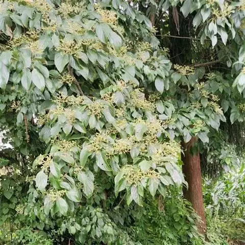 多花梾木(学名:Swida polyantha (Fang et W. K. Hu) Fang et W. K. Hu ),是山茱萸科、梾木属木本植物;幼枝细瘦,疏生白色平贴短柔毛,二年生枝圆柱形,红色,无毛,但有少数淡黄色圆形皮孔。叶对生,薄纸质,多少为长圆卵形。伞房状聚伞花序顶生,多花,开展近于球形。花小,白色,后变为黄色;花萼裂片4,尖三角形。果实未详。花期6月,果期未详。产陕西辛口洞子沟河岸疏林内。