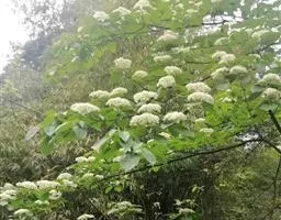 该种与凉生梾木S. alsophila(W. W. Smith) Holub的关系相近,但叶片为薄纸质,多少为长圆卵形,长7-8厘米,宽4-5.5厘米,上面黄绿色,下面淡白色,侧脉7-8对,在上面微凹下,下面明显,叶柄长1.5-2厘米,伞房状聚伞花序长7-8厘米(包括总花梗在内),宽8-10厘米,多花,花白色,后变为黄色,花瓣几为披针形,长5毫米,宽达1.5毫米,雄蕊稍伸出花外或与花瓣等长,花柱较长,常长达4毫米,易于区别。