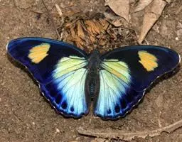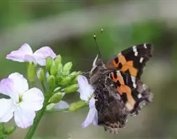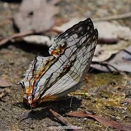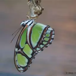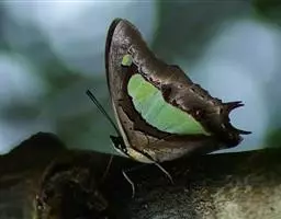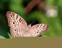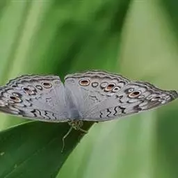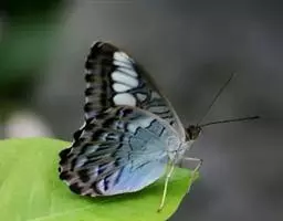 绿豹蛱蝶(雌) 雄蝶的前翅面上,沿1-4的翅脉有香鳞。香鳞会散发出一种吸引雌蝶的气味,也能作为识别的特征。雌蝶很特别的不会在叶子或茎上产卵,反而是在林地地面高1-2米的树皮上产卵。当卵于8月孵化后,毛虫会立即冬眠至春天。醒来后会掉到地上,以紫罗兰为食物。毛虫一般会在晚间觅食,日间会藏身在远离食物的地方,寒冷季节会出来在干叶或枯叶上哂太阳。它们会在地上的植物结蛹,于6月成蝶。