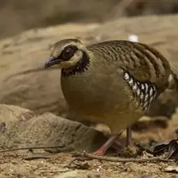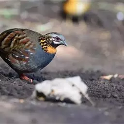 褐胸山鹧鸪:雄鸟体长22厘米,体重310克;雌鸟体长23厘米,体重220-275克。前额皮黄白色,…