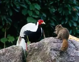 刚果孔雀栖息于海拔1200米以下的热带雨林深处,一般在水源附近活动。