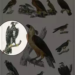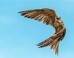 靴隼雕:是鸟纲、鹰科的中型鹰类。全长约40-53厘米,头、颈白色沾棕,纵贯以暗褐色轴纹,眉纹黑色。…