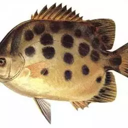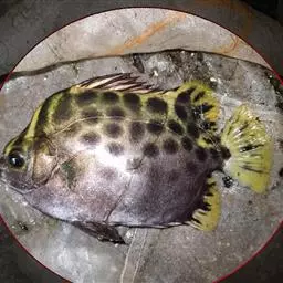 斑点鸡笼鲳,Drepane punctata ,帘鲷科鸡笼鲳属的一种鱼类。体侧扁而高,…