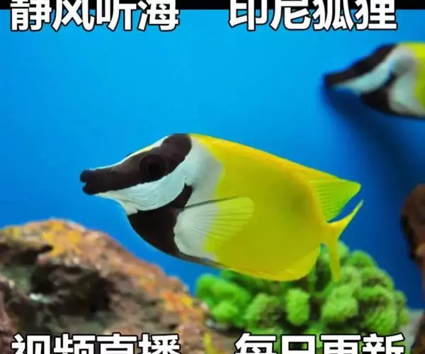 狐面鱼,学名:Siganus vulpinus (Schlegel and Müller, 1845),又名狐狸鱼,分布于菲律宾、中国台湾、太平洋的珊瑚礁海域,属臭肚鱼科。体长15-20cm,椭圆形。头部三角形,嘴尖前突。眼睛靠近头顶。体色金黄,背部中央有一棕色圆斑,头部银白色,两眼间有一条棕色环带,胸部和胸鳍基部棕色,脸面花纹图案酷似狐狸头面而的名。饲养水温27-28摄氏度,海水[url]比重1.022-1.023,海水ph值8.0-8.5,饵料有冰冻鱼虾肉、水蚯蚓、藻类、切碎烫熟的菜叶、海水鱼颗粒饲料等。