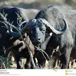非洲野水牛:共有5个亚种。头体长2.1-3.4米,身高1-1.7米,体重300-900千克。胸膛宽…
