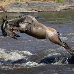 角马属,是偶蹄目牛科下的一属。角马属共有两种,即斑纹角马,白尾角马。…