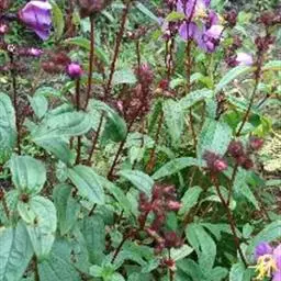 灌木,高0.3-1(-1.2)米;茎四棱形或稀六棱形,被平贴的糙伏毛或上升的糙伏毛。叶对生或有时3枚轮生,叶片坚纸质,卵形至卵状披针形,顶端渐尖,基部钝或圆形,长5.5-11.5厘米,宽2.3-3厘米,全缘,具缘毛,两面除被糙伏毛外,尚密被微柔毛及透明腺点,5基出脉;叶柄长0.5-1厘米,密被平贴糙伏毛。