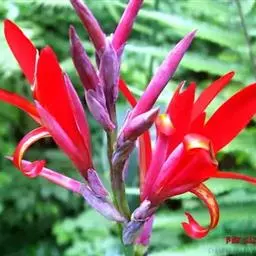 粉美人蕉:是一种球根草本植物。根茎延长,株高1.5-2米;茎绿色。叶片披针形;总状花序疏花,单生或…